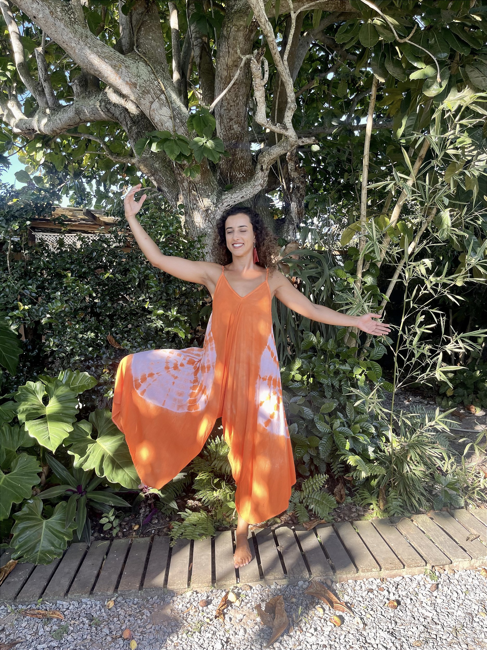 Macacão Saruel Flow é confeccionado numa base de 100% viscose. Possui tintura manual em tie dye.